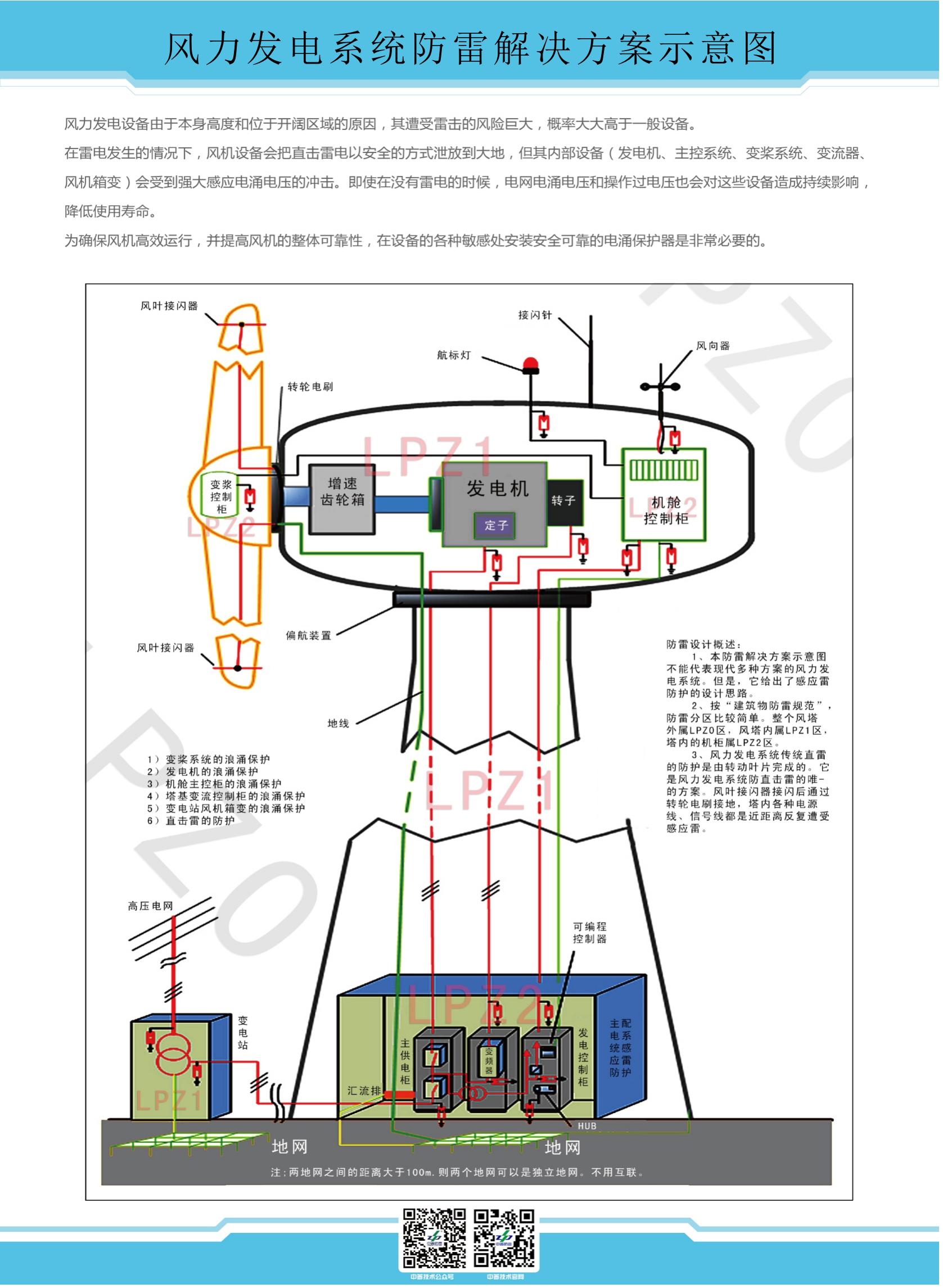 風(fēng)機(jī)內(nèi)部集成了大量的電氣,電子設(shè)備,例如:主控柜,動(dòng)力柜、信號(hào)柜、發(fā)電機(jī),驅(qū)動(dòng)裝置,變頻器,傳感器,以及相應(yīng)的總線系統(tǒng)等。這些設(shè)備集中在一個(gè)狹小的區(qū)域里,電涌都會(huì)給風(fēng)機(jī)機(jī)組帶來(lái)嚴(yán)重的損壞。保障這些電氣裝置的正常工作是非常重要的,雷電流耦合或開關(guān)操作引起的過(guò)電壓在這些裝置上都會(huì)導(dǎo)致嚴(yán)重?fù)p壞,引起整個(gè)風(fēng)機(jī)的停機(jī)。因此,風(fēng)機(jī)的雷電和過(guò)電壓保護(hù)非常重要。