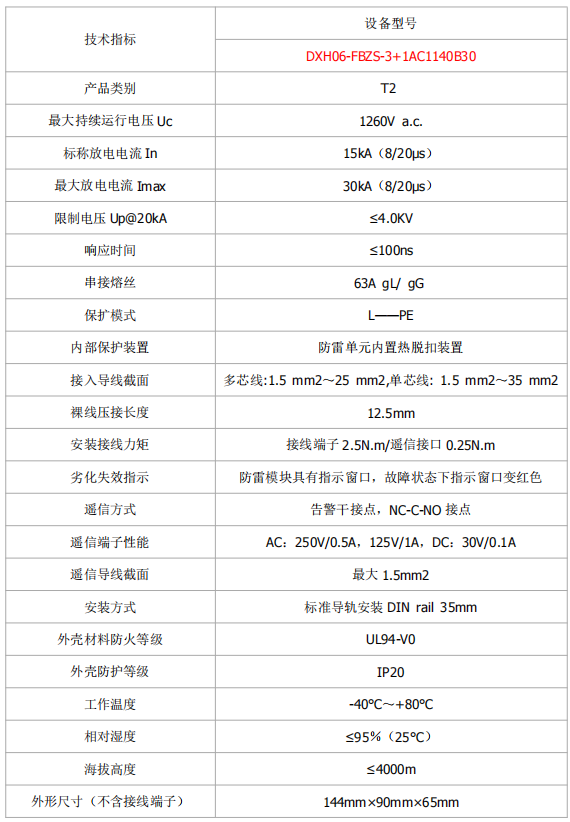 DXH06-FBZS-3+1AC1140B30是帶有遙信報警裝置的電涌保護器。產品適用于風電行業(yè)4~12MW以上風機變流系統(tǒng),變流器電壓為1140V的電源設備防雷以及操作過電壓的保護。