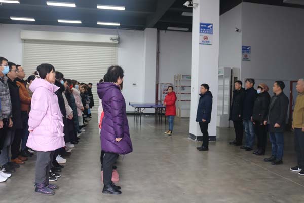 儀式開始前,總經(jīng)理殷建云和董事長殷建軍給全體員工上了節(jié)后復(fù)工復(fù)產(chǎn)第一課——安全生產(chǎn),強(qiáng)調(diào)各干部員工一定要落實(shí)好安全生產(chǎn)工作。隨后向所有到場的同事送上了新年的祝福與問候:“祝愿大家新的一年萬事如意,工作順利,業(yè)績攀升!”