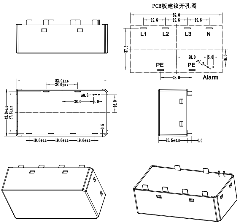 該電涌保護器內(nèi)部安全脫扣采用了140℃低溫焊錫,焊接請注意控制溫度,防止出現(xiàn)脫扣失效;PCB防護線路銅皮寬度要滿足通流容量的要求;電源線與告警線路爬電距離要滿足相關(guān)安規(guī)要求。