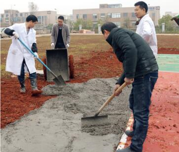 在12月24日當天下午,為了提高籃球場使用的便捷性,對籃球場擴建一條行人通道,由工會組織的籃球場修繕隊正式進場了,十幾名員工,在寒風中各司其職,有的攪拌石沙、有的添加水泥、有的運輸攪拌好的砂漿、有的平整水泥路面,雖然室外的溫度寒風刺骨,但他們都干得熱火朝天,頭頂冒著熱氣。